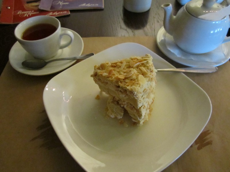 Дегустации кулинарных шедевров от Акварели сопутствовала интереснейшая беседа с менеджером Екатериной. Кто как ни менеджер лучше всех знает о вкусных позитивных сторонах своего заведения. В общем, сидел, ел, пил, беседовал, наслаждался обстановкой. Чудное место! Самые теплые впечатления оставил десерт - тортик Кофейный прогресс. Если прочтя этот отзыв, заглянете в кафе Акварель, очень рекомендую - попробуйте сами и возьмите с собой ребёнка - ему понравится!